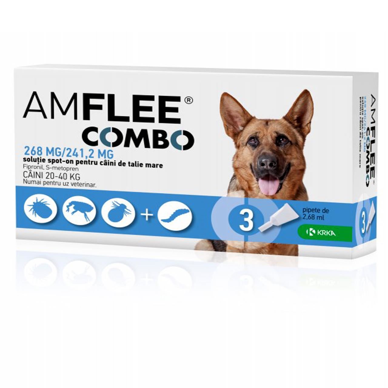 AMFLEE combo 268 mg/ 241,2 mg solutie spot-on pentru caini de talie mare;