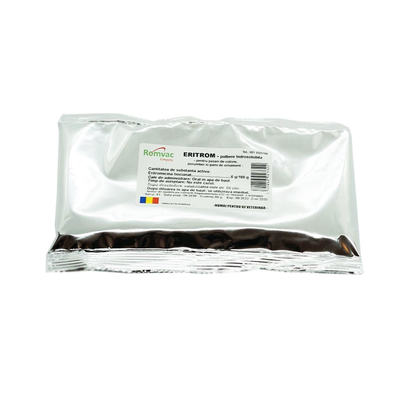 ATENŢIONĂRIPe timpul tratamentului se foloseşte numai apă medicamentată.Soluţiile de Eritrom se prepară în momentul folosirii.Nu se administrează împreună cu alte antibiotice.Produsul nu se administrează păsărilor destinate consumului uman.