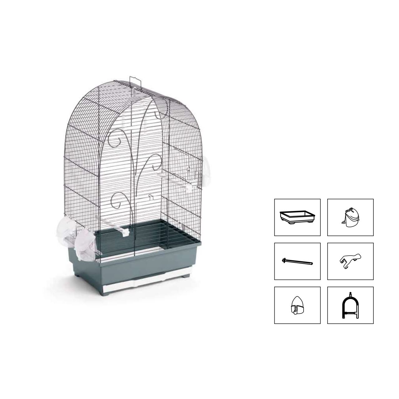 Colivie elegantă și confortabilă, cu un design deosebit, locuința perfectă pentru păsările exotice pe care le dețineți. Este confecționată cu gratii metalice, bază din plastic și o tăviță din plastic, detașabilă, rezistentă. Materiale non-toxice pentru păsări.