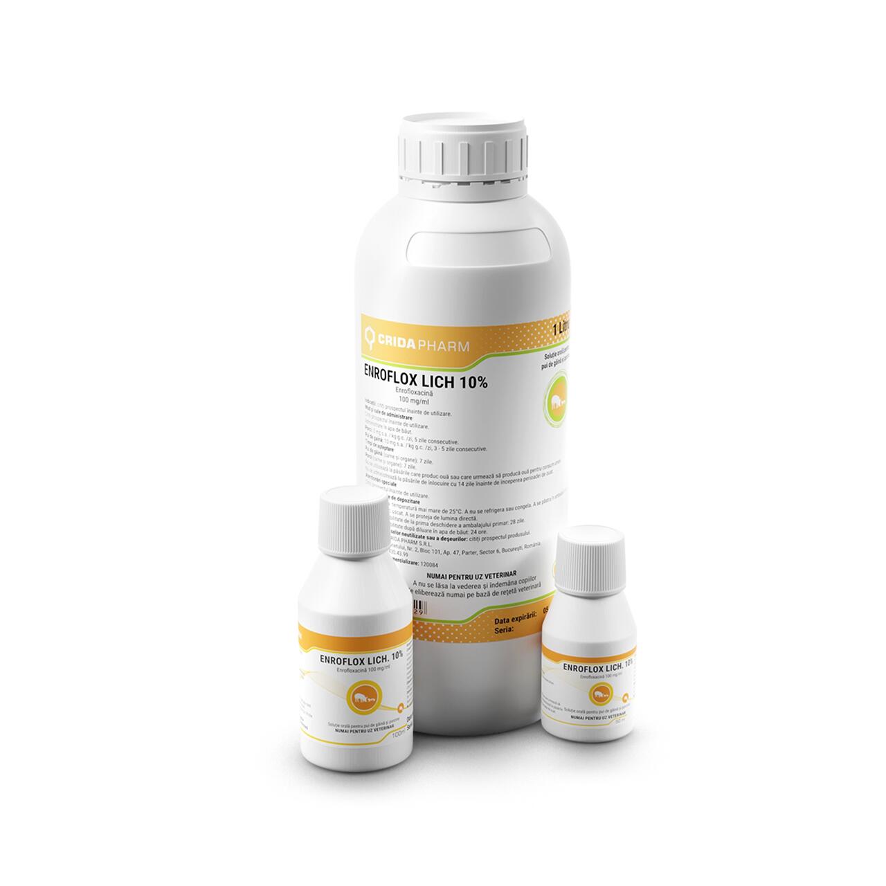 100 = mg enrofloxacină/1 ml Enroflox Lich 10% soluție orală
