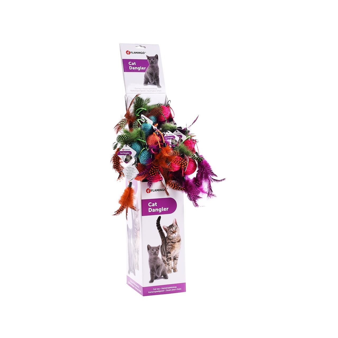 JUCĂRIE PENTRU PISICI FLAMINGO UNDIȚĂ CU MINGE ȘI CLOPOȚEL 42CM
