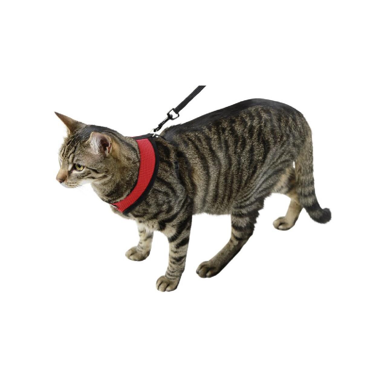 Lesă cu ham pentru pisică, este din material rezistent, ultralejer, ușor reglabil, lavabil la 300C.