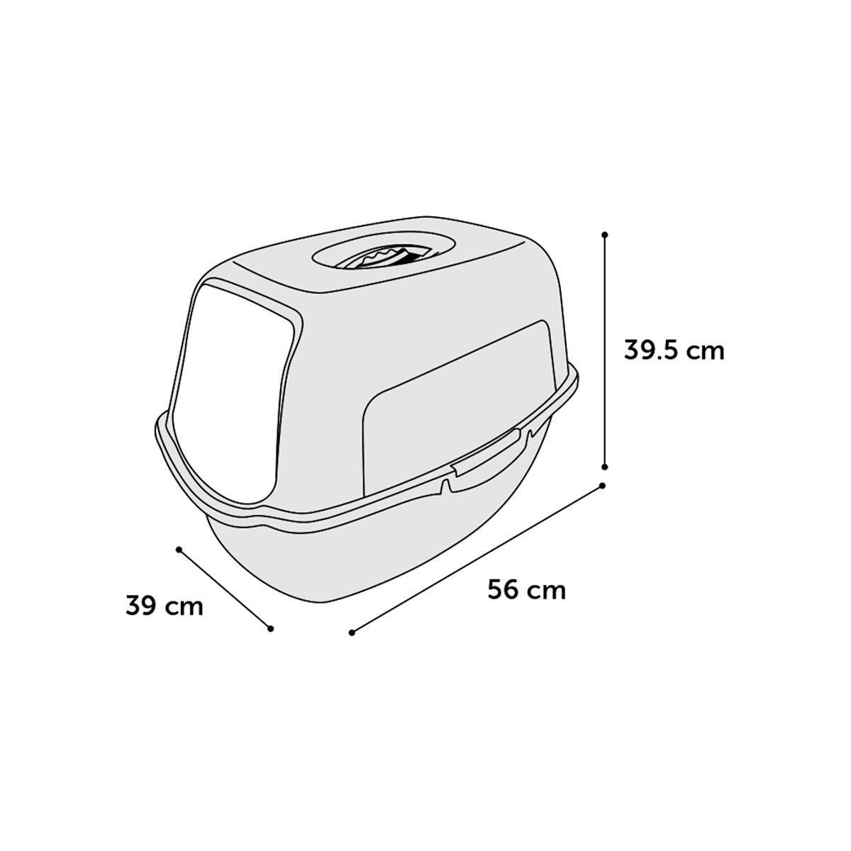 Litiera este acoperită, pentru a oferi felinei un spațiu intim, în care ea să se simtă în siguranță și pentru a limita împrăștierea așternutului, excrementelor și a mirosului acestora.