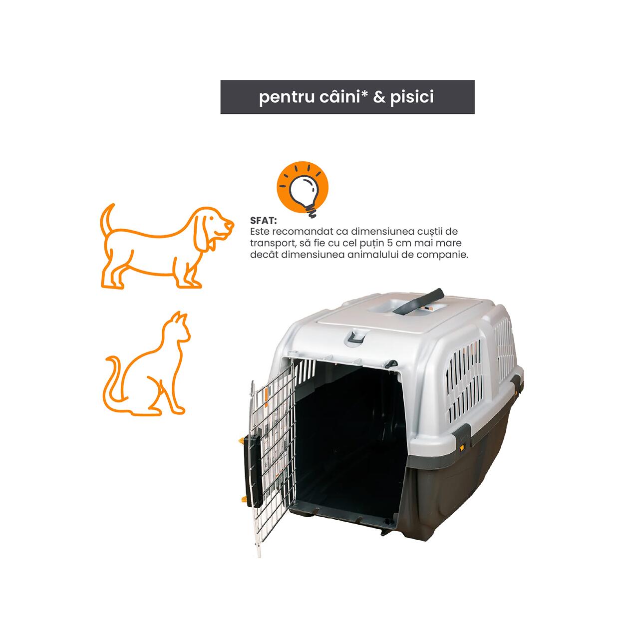 Dimensiuni: 60×40×39(h) cm - spațioasă, ideală pentru animale de talie mică și medie.