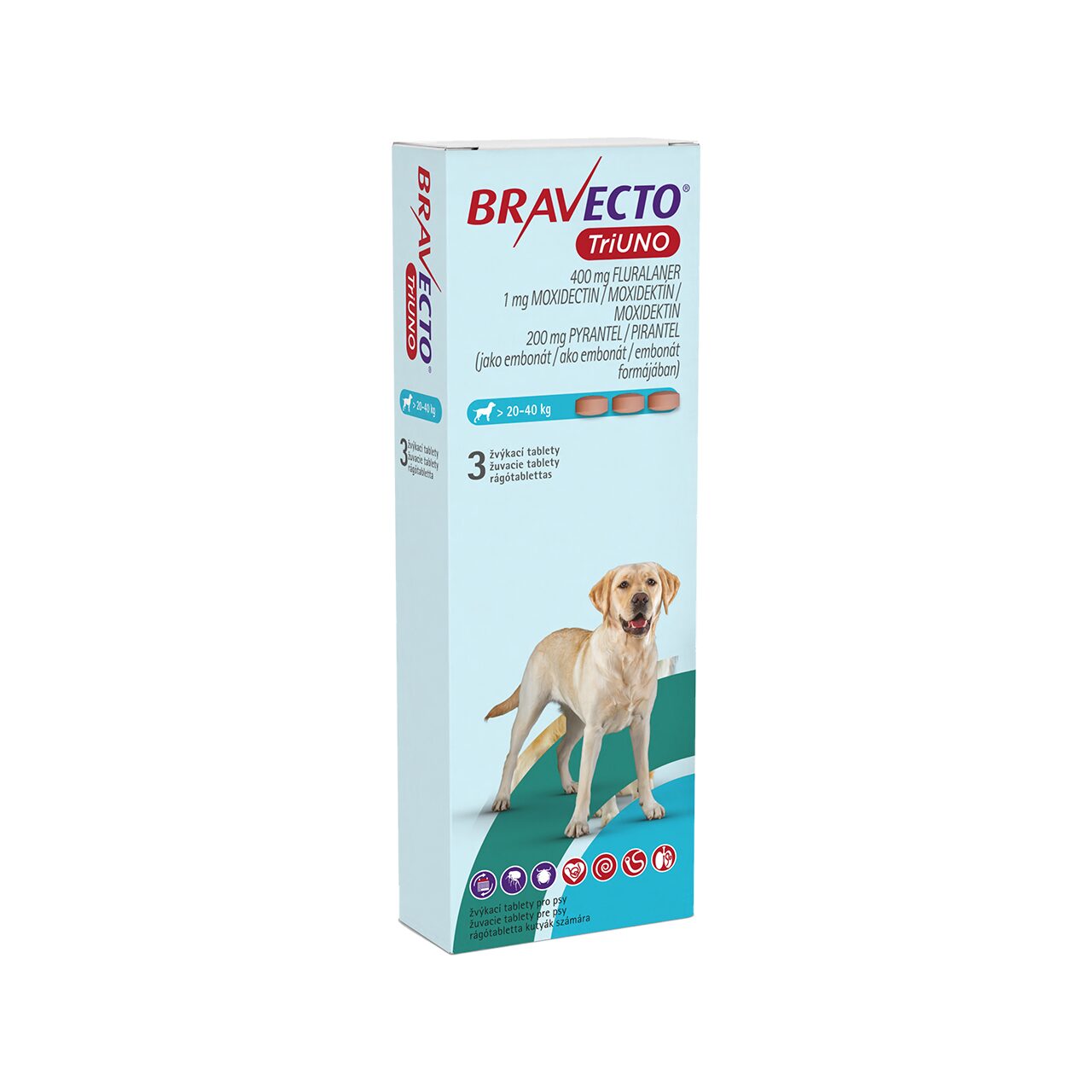 BRAVECTO TriUNO comprimate masticabile pentru câini (> 20-40 kg)