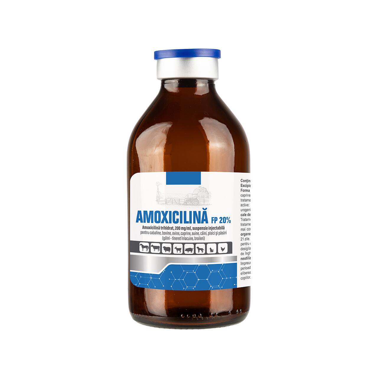 AMOXICILINA FP 20%, 200 mg/ml, suspensie injectabilă pentru cabaline, bovine, ovine, caprine, suine, câini, pisici și păsări (găini - tineret înlocuire, broileri).