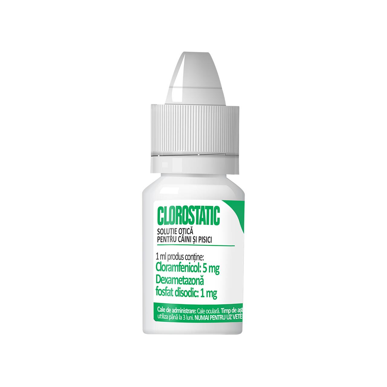 CLOROSTATIC soluție otică este indicat în tratamentul otitei externe și otitei medii supurate, produsă de germeni sensibili la acțiunea cloramfenicolului.