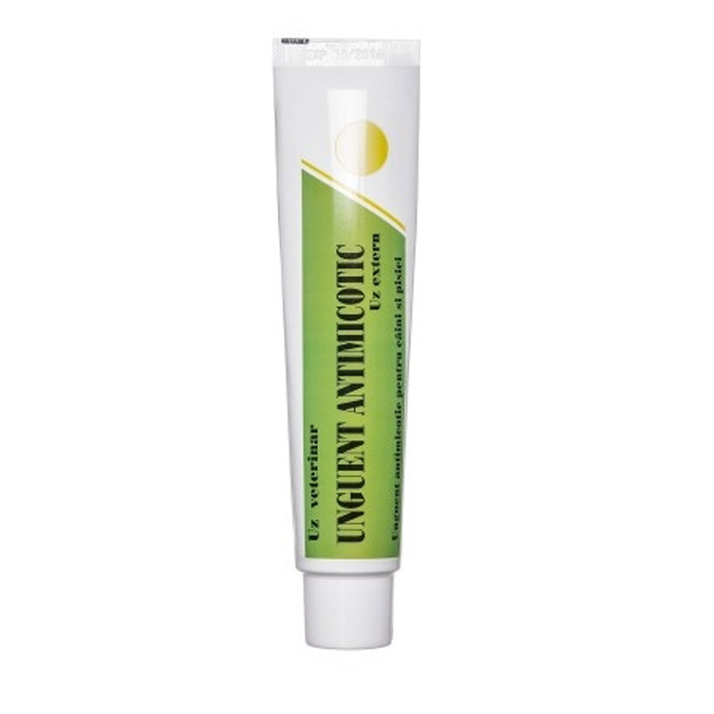 Tratamentul cu unguent antimicotic constă în aplicarea unui strat subţire, dar continuu de unguent pe zonele afectate de 2 – 3 ori pe zi, timp de 3 – 5 zile, cantitatea de unguent folosită fiind în funcţie de întinderea leziunilor.