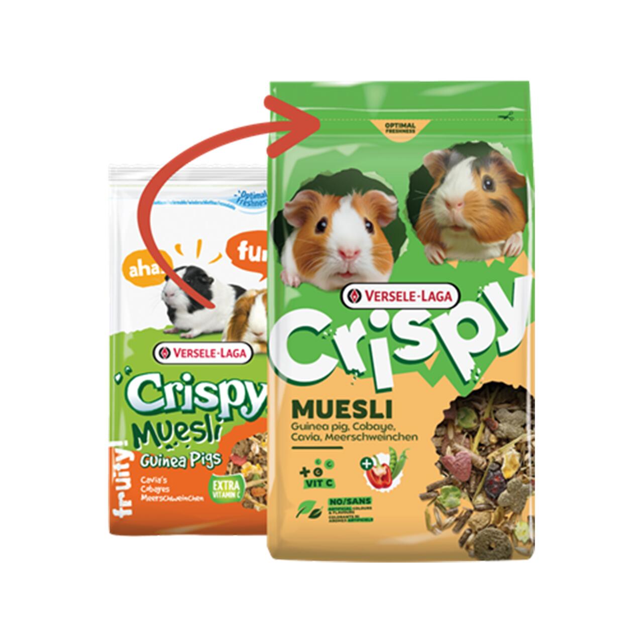Crispy Muesli pentru porcușori de Guineea este un amestec bogat în fibre, echilibrat nutrițional, cu gust și texturi variate, care stimulează comportamentul natural de hrănire. Fără coloranți și arome artificiale. Potrivit pentru toate rasele.